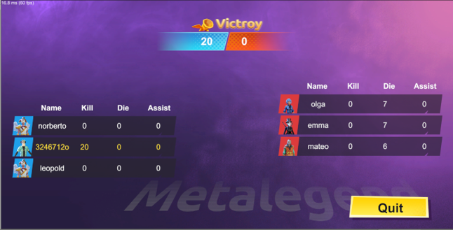 ⑤ The match ends when one side reaches 20 kills or when time runs out. The side with the most kills wins, and match statistics will be displayed.